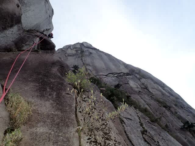 とりあえず、1ピッチ登って、様子を見ようと、私がトップで取り付く。